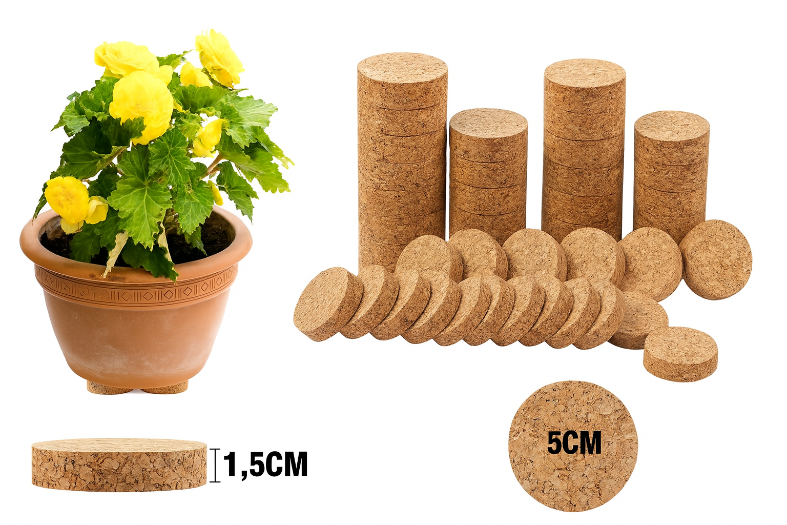 Giv dine krukker og potter et løft med disse elegante plantefødder i kork. De små, diskrete fødder er næsten usynlige, men gør en stor forskel: